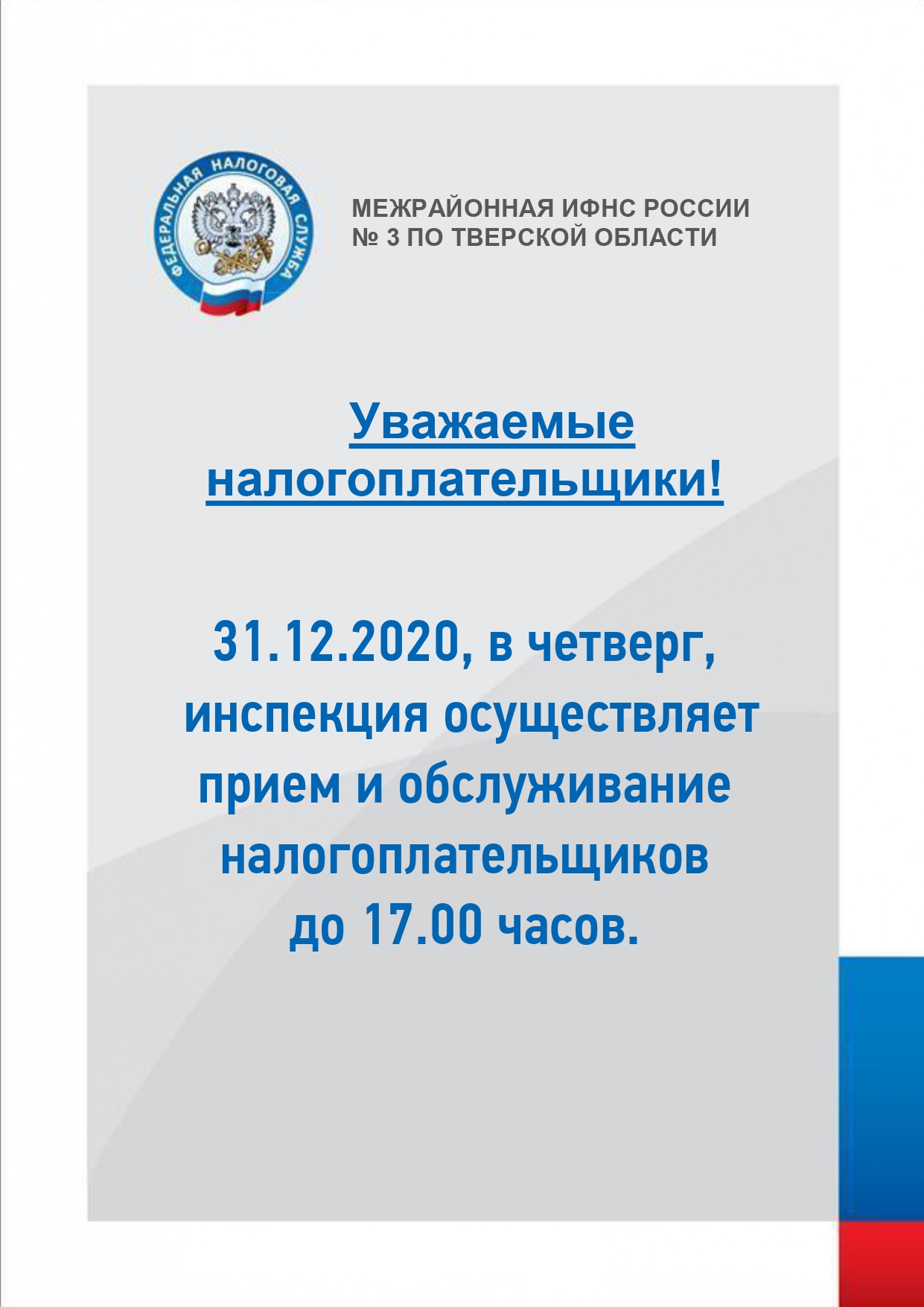 Налоговая инспекция проводит дни открытых дверей 23-24 марта, 24-25 апреля